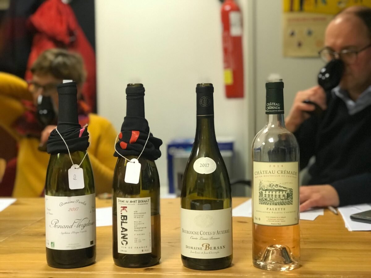 Vins dégustés : 5 ou 6 vins dégustés à l’aveugle